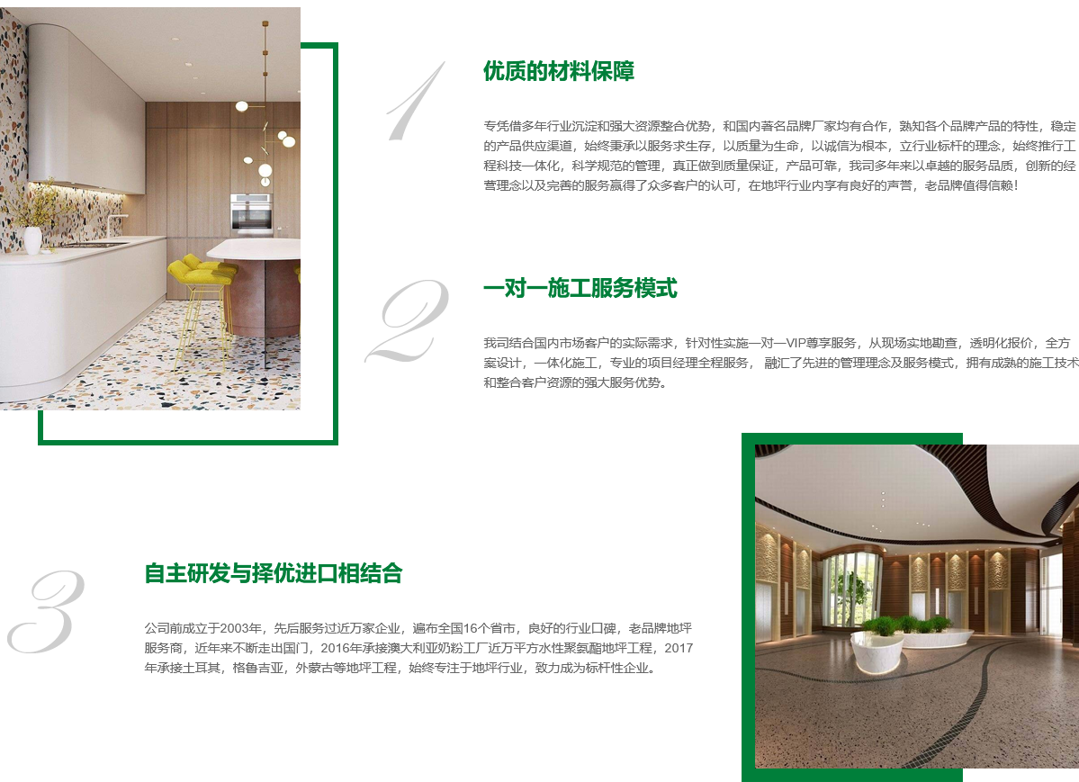 上海勇享地坪是上海勇享建筑裝飾工程有限公司旗下出色也是國內地坪承建商企業。 本公司成立于2012年,是專業從事現代化水磨石工業地坪、商用地坪、國內獨家創意類地坪、市政公用地坪、混凝土固化(染色)地坪,倉庫地坪設計,停車場地面設計,學校,精品地面設計,酒店,餐廳各類地面的設計與施工,運動場地及其他地坪,水磨石地板系列的研發、設計、生產、銷售、施工、服務為一體的高新科技企業。